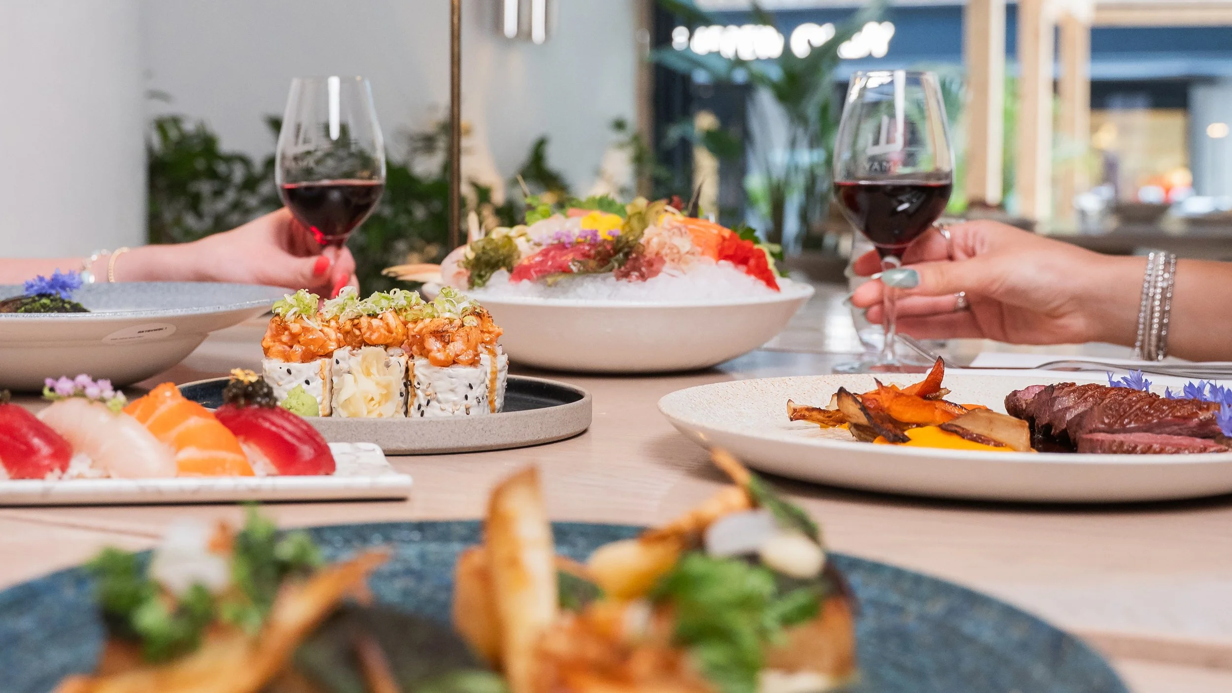 Huîtres de première qualité fraîchement ouvertes, servies sur glace, mignonnette Yama et une sauce cocktail relevée au wasabi